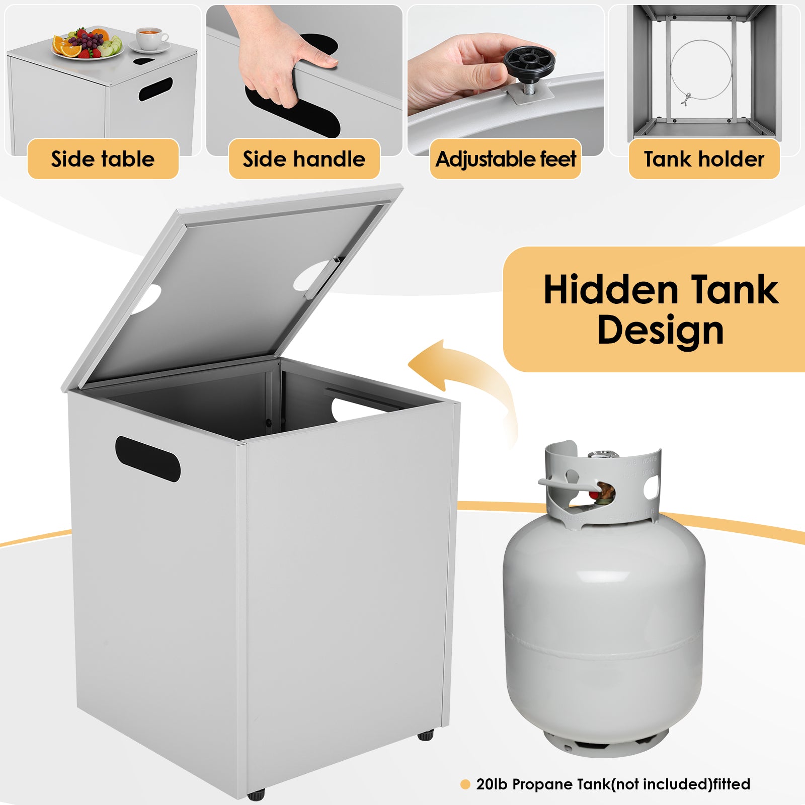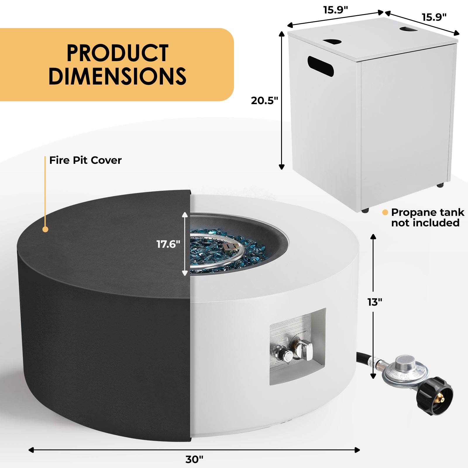 TLGREEN 30-inch propane fire pit table delivers 50,000 BTU of powerful heat with a durable stainless steel burner. Its versatile 2-in-1 design serves as both a warm fire pit and a practical side table. Complete with accessories and elegant fire glass for instant ambiance.