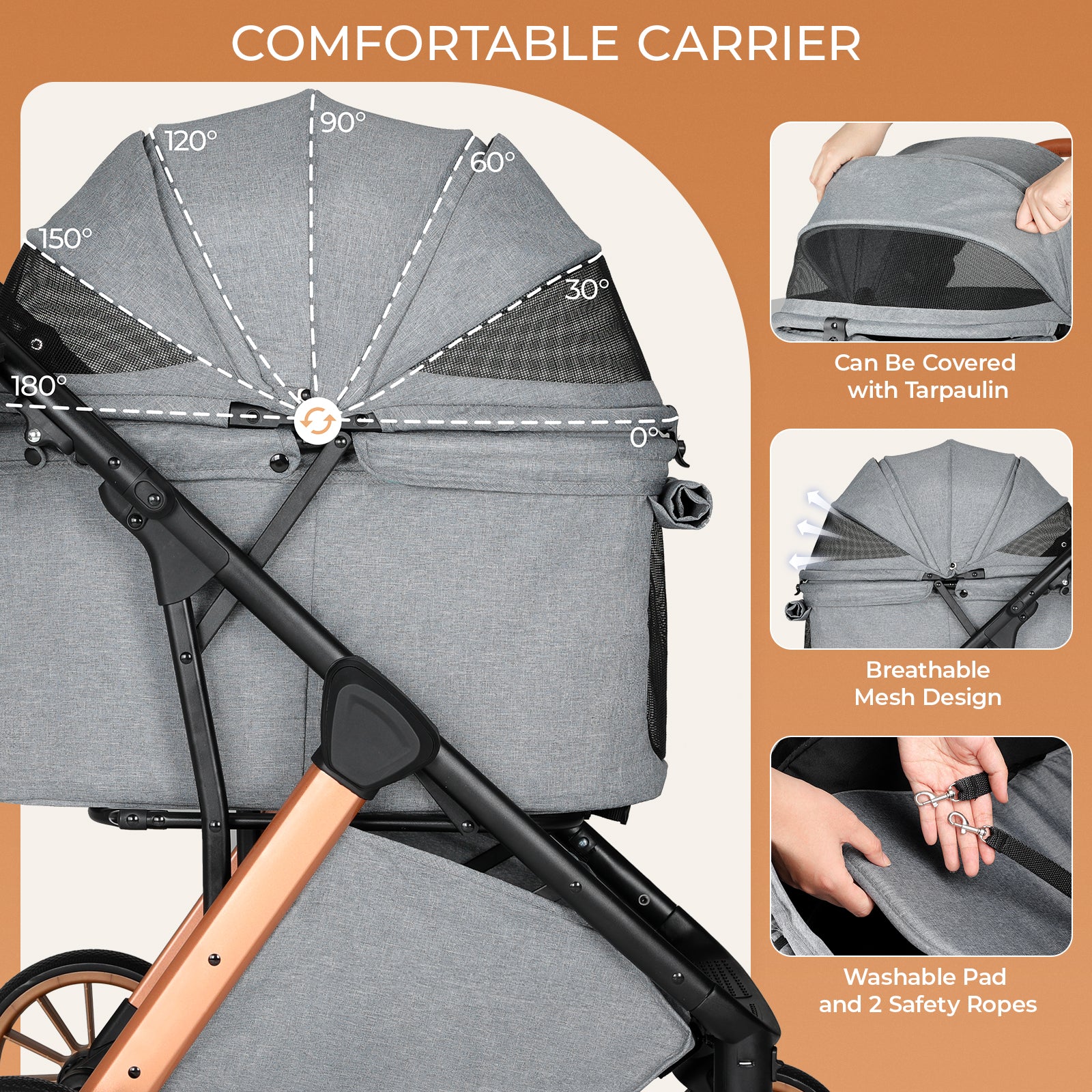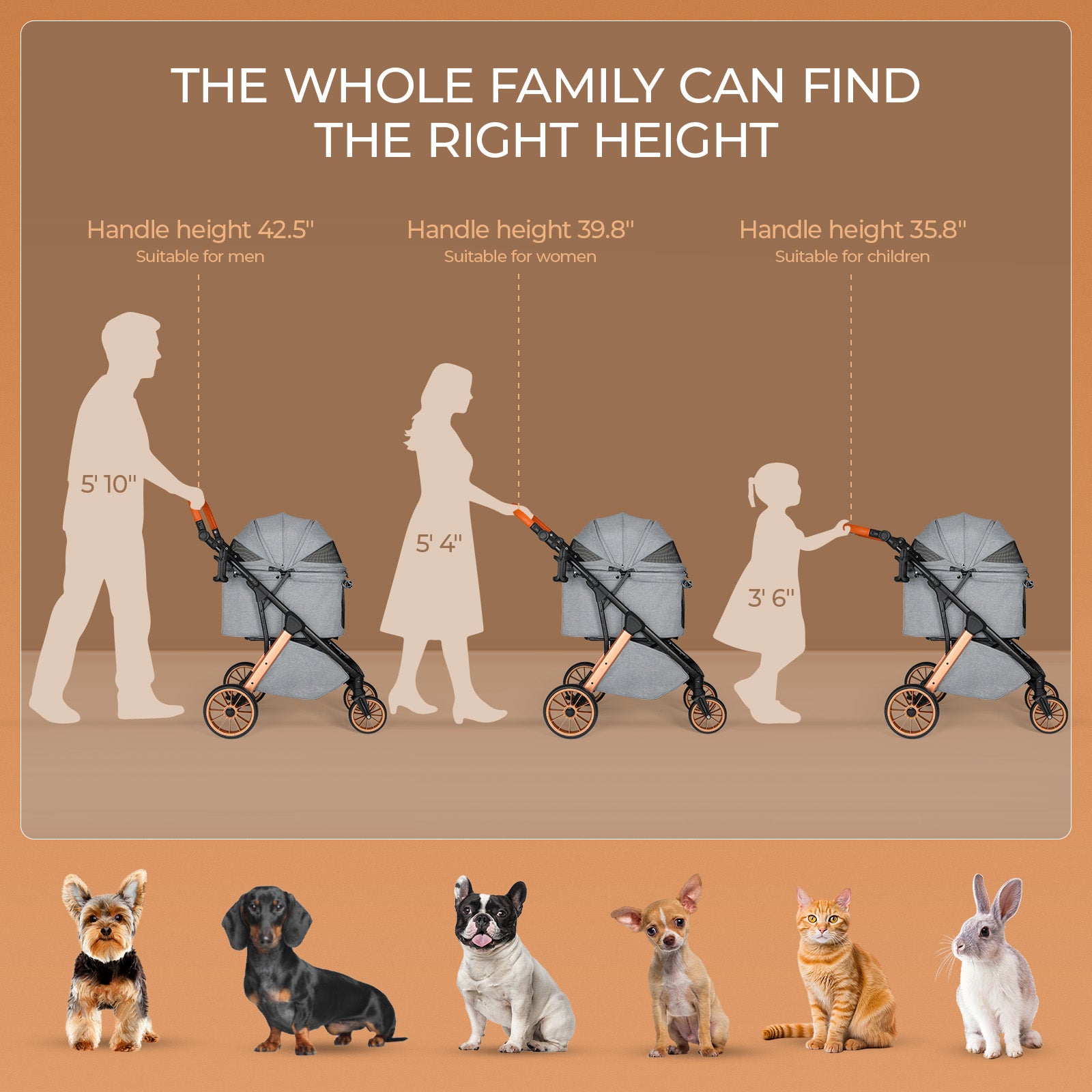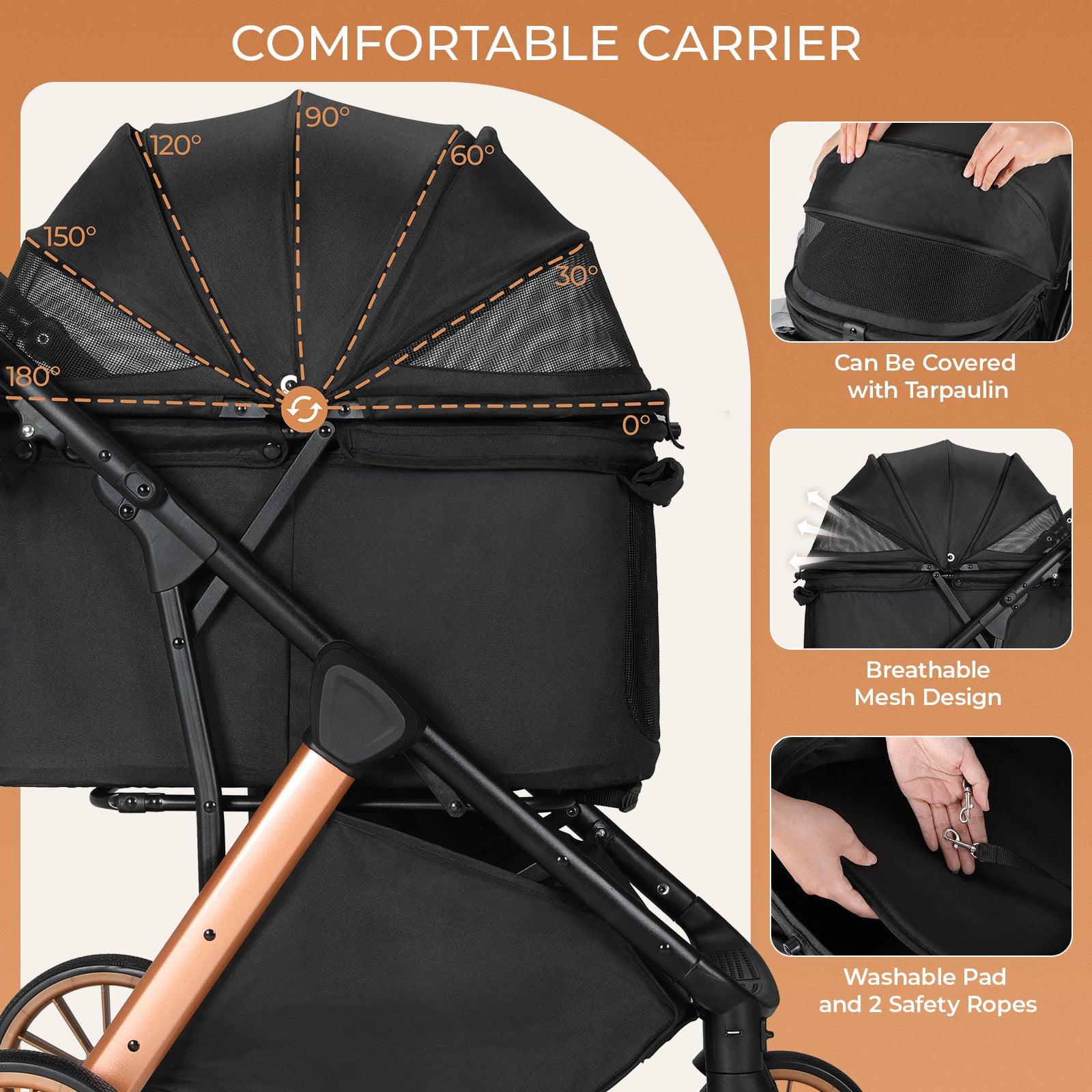 TLGREEN Foldable Dog Stroller for Medium Small Dogs Cats Up to 55 Lbs, Aluminum and Carbon Steel Frame Pet Stroller with Cup Holder, Adjustable Height