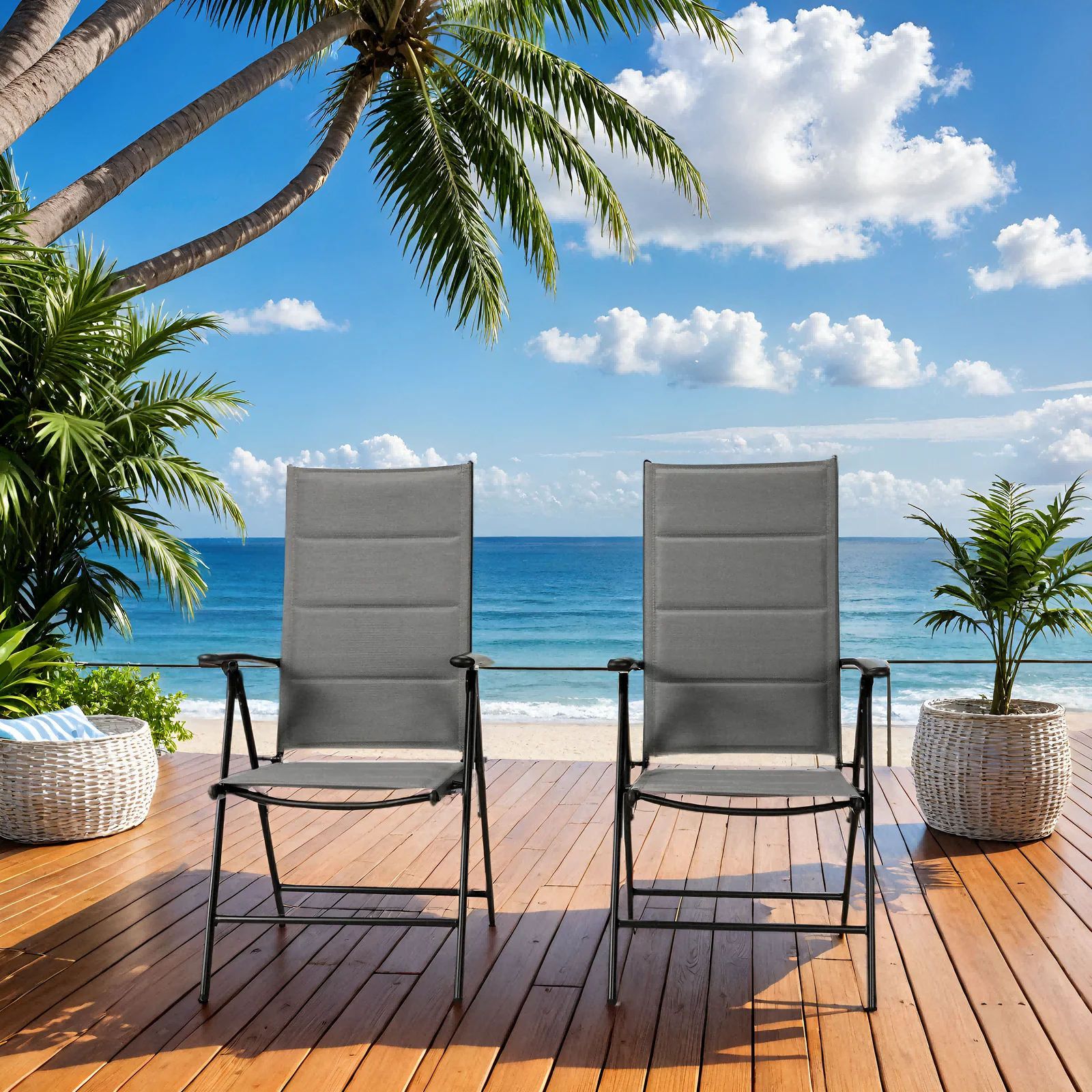 TLGREEN Outdoor Folding Chairs Set (2-Pack) ,Patio Chairs with Foam-Padded Textilene Fabric & Lightweight Aluminum Frame, 7-Position Adjustable Back(Gray)